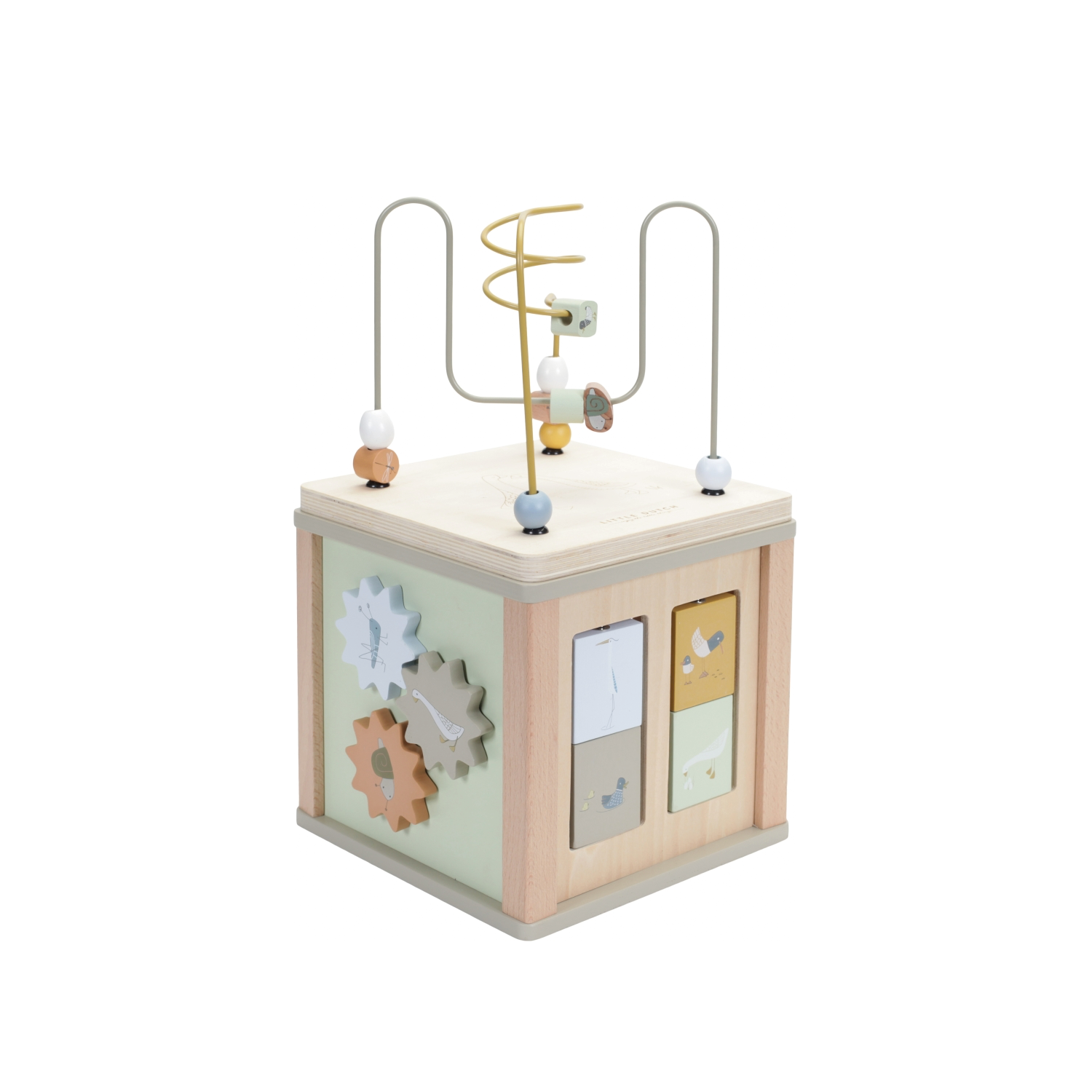 The Little Dutch activity cube guarantees plenty of challenges for your child. Each side has a different educational activity. It includes a shape sorter, turning gears and a fun bead spiral on top. Because the bead spiral can be placed upside down in the cube after use, it is easy to store. Your little one will have hours of fun with the activity cube.