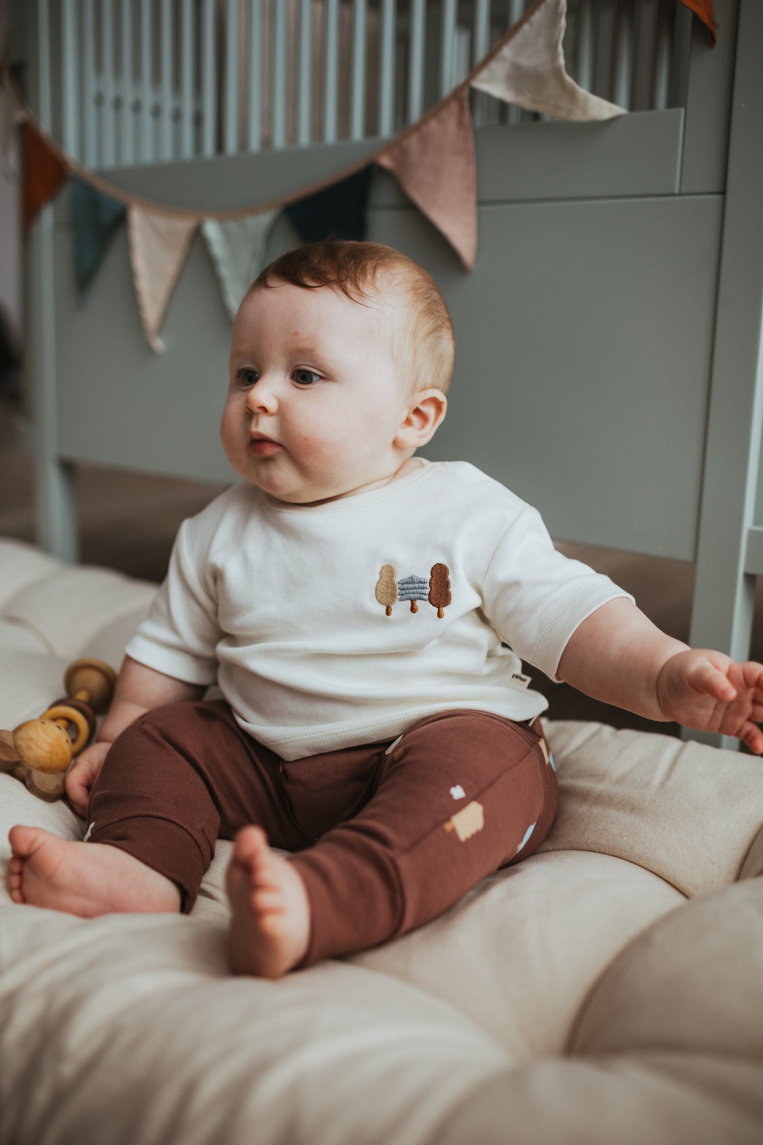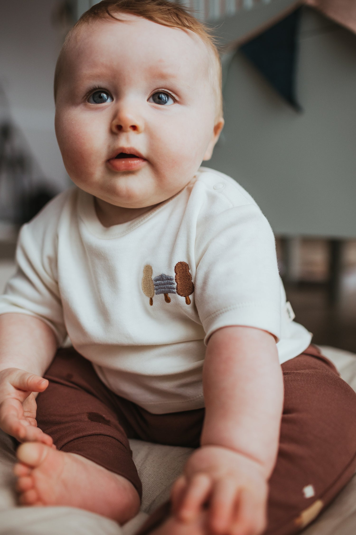 100% organic jersey cotton T-shirt in Sandstone with small Trees emboridery motif.